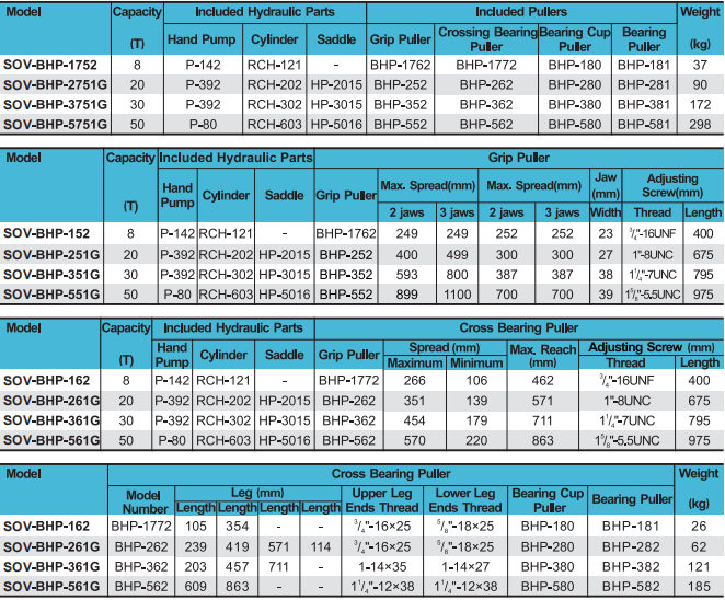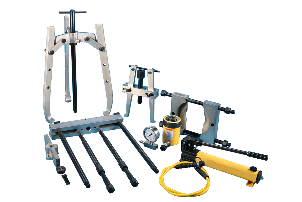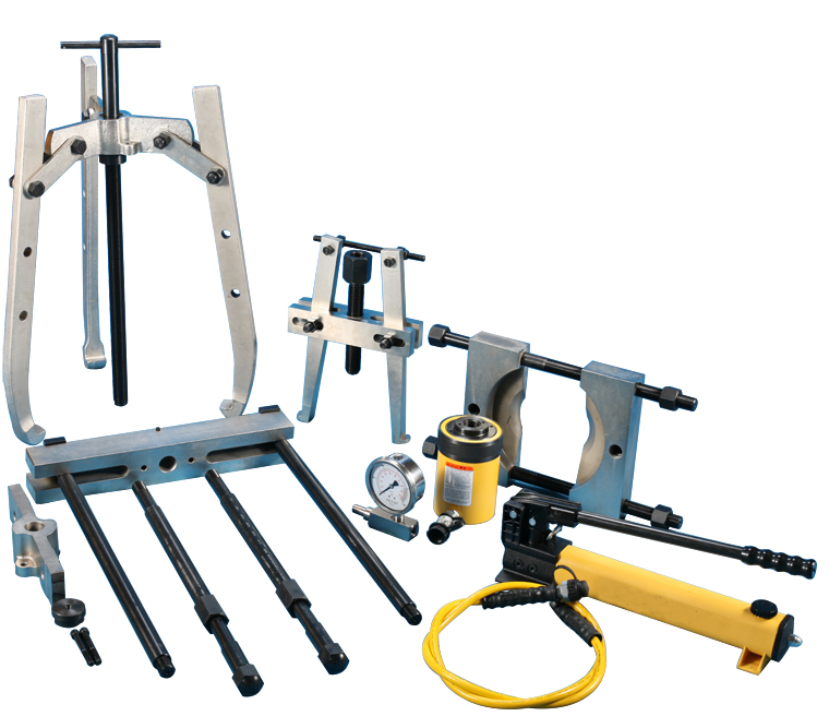 * Standard hydraulic puller sets include grip puller sets, cross bearing puller sets, bearing cup puller sets and accessories